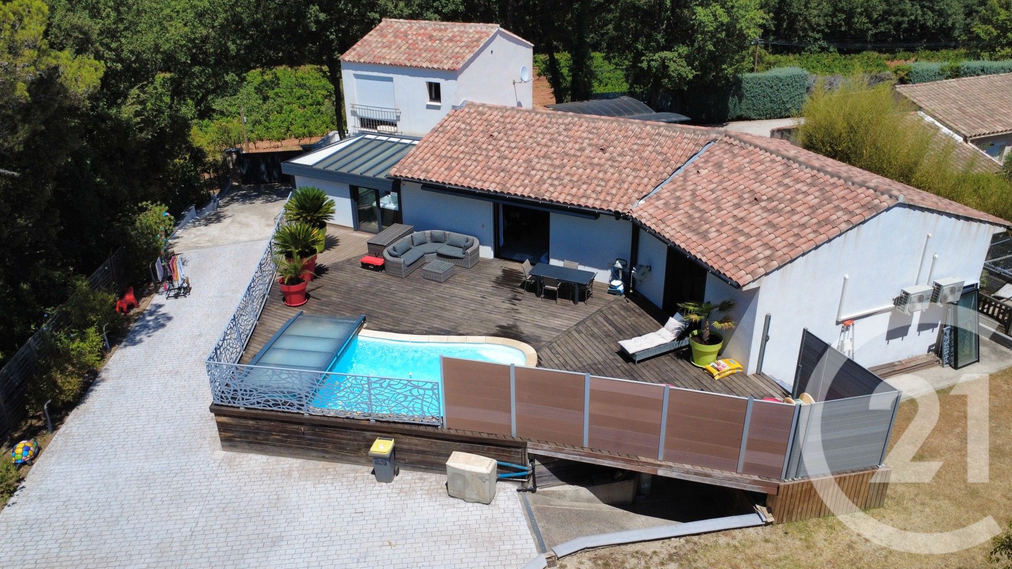 Vous aimerez profiter de la piscine chauffée toute l'année et son système de protection par dôme totalement amovible permettant de découvrir totalement celle-ci.